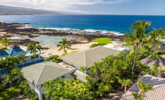 E komo mai! Welcome to our light and bright beach house, located directly on the calm and lovely Keiki Pond at Kona Bay Estates. Enjoy ocean and beach views from every room. The primary bedroom features 180* view of the beautiful Kona coast. Kona Bay Estates is ideally located less than a mile from the shops and restaurants of Ali'i Drive, as well as the start/finish line of the Ironman competition.