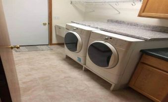 This two bedroom, two bathroom house includes vaulted ceilings, open kitchen design, and a back sitting room that has big viewing windows that overlooks a pasture and an Amish farm. The kitchen and dining area include the perfect place to host family members for the holidays or for gatherings with a beautiful oak dining table. The kitchen is fully furnished for entertaining and there is covered parking in an attached garage as well as a washer and dryer available for laundry. There is a sleeper sofa that can sleep 1 person depending on size, and a queen-sized inflatable bed with legs. We offer the standard booking price for four guests, and $10 per guest after that. There is an early check-in fee. If desired please make request in a message. Kalona offers restaurants for an unforgettable, unique evening dining experience.