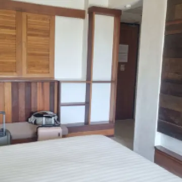 Room seemed smallish to me compared to advertised size. Also felt the interior finish was not very good. Maintenance needed improving. Noisey air-conditioner that struggled to cool room. Photos of floor inside room. Quite expensive for Thailand .