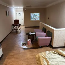 Too bad we don't have a car, because we had a parking space! Check in was easy and our room was spacious... It did smell like old cigarette smoke, but the sheets and bathroom were definitely clean. The floor directly outside of the bathroom was very warped from water damage, but it held up under our feet. The interesting chair was interesting, but not put to use.
