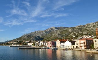 Maison mitoyenne "Snježana". Au cœur de la ville, à 50 m de la mer, à 150 m de la plage. Infrastructures de la Maison: accès internet. Accès en voiture jusqu'à 50 m de la maison. Parking public 150 m. Magasins 30 m, restaurant 50 m, arrêt de bus 180 m, plage de graviers, plage de rochers, plage bétonnée 150 m. Attractions à proximité: national park Starigrad Paklenica 40 km.
