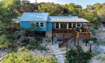 Cedar Cliff Cottage sits on a bluff above the Guadalupe river's north fork in one of the most scenic areas in Texas. This incredibly special area host some of the most popular camps and resorts in the hill country. Camp Stewart, Camp Waldemar, The Boy Scouts Camp Bear Creek and Mo Ranch are all within a few miles or less. This little cottage packs a huge punch when it comes to comfort and amenities. The cottage is clean and cozy, and the property is open and spacious, allowing your group to stretch out and find the spaces that suit them best. Whether it's a giant, private patio with a stone fireplace, a heated, covered back deck that's perched above the river valley, or multiple other options for relaxing, there is a place for every mood and personality type. As our personal guest, you will have access to hidden river treasures seldom seen by and not accessible to the public. Beautiful river features like a picture-perfect waterfall and crystal-clear plunge pool with cascading spring water constantly rushing over it are waiting for you to explore and enjoy. When first entering the property, you will find yourself immediately thrown into the hill country lifestyle with a huge stone patio, loaded with custom seating and tables, and a picture-perfect outdoor stone fireplace that is just waiting to be lit up at night. Here you will find an excellent place to spend the evening and night gathering together and watching the stars above, all while sitting under the dreamy party lights. This is also the location of the BBQ smoker pit that is sure to be pumping out the incredible smell of burgers and steaks during your stay. Upon entry you will find a cute kitchen equipped with all types of cooking appliances, including an oven/stove top, microwave, pancake griddle, blender, crockpot and just about everything else one may need to cook their favorite meals. The living room is a wall of windows and has plenty of seating for everyone. The 65 inch 4K TV is perfect for family movie night after spending the day in the sun. The built in window seat is a great place for sleeping small children with blankets and pillows provided. Here you will also find a sleeper sofa, perfect for fitting a couple of more guest into the cottage for efficient vacation living. Just off of the living room is a large, covered deck with more seating and tables. The deck is an excellent place to hang out under cover, eat, and take in the incredible eyepopping, panoramic views of the mile long bluff just across the north fork valley. For the cooler nights, you can crank up the commercial electric heaters with the push of a button. At night you can turn on the party lights, kick back and enjoy the cool summer breezes that blow through the valley and ridge tops of the Guadalupe's north fork. If you are lucky enough to have a clear, moonless night during your stay, you will see stars like you never have before. At night you can even hear the calming sounds of the waterfalls just upriver, echoing off of the limestone cliffs. Each bedroom has brand new beds packed full of fresh blankets and pillows to give you the coziest sleeping arrangements possible. The cottage sits high above the river, allowing for panoramic views, but also quick access to the water just down a fun little path through the trees, or a second path that takes you directly to the river's plunge pool and waterfalls. Two kayaks are available for our guest use, however, you will need two people to carry each one down to the water and then back to the house each day. Ever snorkeled fresh water? This is a place you can do it because 90% of the time, the water is virtually as clear as a swimming pool. This clarity also gives moms peace of mind knowing they can see the little ones at all times. No deep dark water here to worry about moms. This home is perfect for smaller groups, consisting of no more than 4 adults, or 4 adults and the accompanying children all totaling no more than 6 persons. We provide blow up mattresses to put the kiddos on if you need every bed for the adults. This property does sit on a bluff and small children must be watched at all times as well as young adults properly supervised. (This home is in a small neighborhood that has full time residents so strict noise rules are in place and louder groups will not be able to stay here. We do expect all guest to move conversations and gatherings into the house at 9 pm on weekdays and 11pm on Fridays and Saturdays.)About pets:No pets allowed.About checkOut:Check out before 11:00 AM.About children:Children allowed: ages 0-17.Children must not be left unattended..About customRules:Outdoor music is strictly prohibited during your stay, including at the river..All loud conversation must be brought inside each evening;