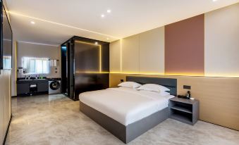 房間空間很大,設施齊全,有洗衣機,智能馬桶,投屏。地暖在極寒天氣顯得格外舒適,非常滿意。