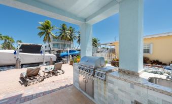 The fully covered ground floor is perfect for outdoor gatherings with a spacious patio table and outdoor kitchen with independent stove and refrigerator - perfect for long days enjoying the Florida Keys under shade or under the sun. Shade becomes more plentiful in the afternoons .