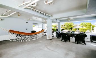 The open layout combines the living, dining, and kitchen areas showcasing unique artwork and tasteful furnishings. The fully equipped kitchen is stocked with all the cooking essentials and stainless steel appliances needed to prepare favorite recipes. Belly up to the breakfast bar, then dine together around the six-seat table. Or, step it up a notch and enjoy alfresco meals in the lower-level outdoor dining area, complete with a hammock. Make use of the popcorn machine and gather in the living room for a movie night. There's also a keyboard to play some tunes and entertain your group and another living space with a TV.
