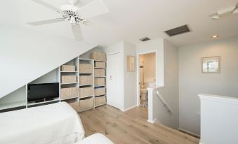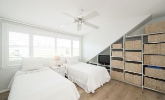 Third Floor: Guest bedroom with twin beds (convertible to king), ensuite bathroom, and plenty of storage.
