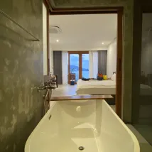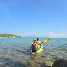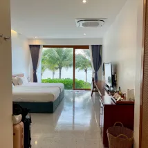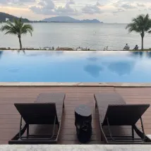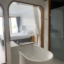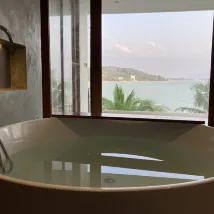 Hôtel récemment ouvert, magnifique comme décrit, personnel adorable La baignoire de la suite est très grande, confortable pour s'y baigner, mais il faut beaucoup de temps pour ouvrir l'eau en fonction de la taille de la baignoire. Des flacons à pompe de savon et de shampoing sont fournis. Il n'y a pas de bonnet de douche, peigne, coton-tige. Le logement est à côté du restaurant Ao Khanom Seafood. Vous pouvez commander à manger dans votre chambre. C'est pratique. Il y a des kayaks pour pagayer gratuitement. Mais le jour de notre départ, les vagues étaient secrètement fortes. Je n'ai donc pas utilisé le service.