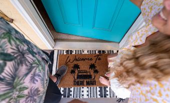Tucked away on a cul de sac, the THERE Maui House features a newly added split AC system throughout the house, an open concept kitchen and living room well appointed with vintage-inspired tropical decor. It also offers a relaxing outdoor deck (or lanai as we call it here in Hawaii) with an intimate sitting area. Wake up with some locally grown coffee out there in the morning or turn the string lights on while the sun sets in the evening and enjoy the company of your friends and/or family.
