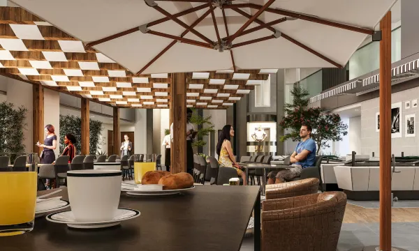 Whether you are on business needing a functional space to work, schedule meetings, leisure tourist or on a romantic holiday our hotel has something to intrigue you. Contemporary in design and created to delight the senses, our uniquely structured 88-room hotel offers all the modern amenities and comforts. From spacious rooms and atrium lobby characterized by its large, open, and airy design, offering seating areas, bar, and an all day dining restaurant for guests to mingle and relax to rain showers and 55" LED TVs we have thought of it all. Re-energized your body with our state of the art pool situated at the focal point of our super spacious lobby and a fully-equipped fitness center. Dining options include our All day dining Marché 15 restaurant and bar serving International cuisine both À la carte and Buffet or relax while sipping your favorite drinks at the Lobby Bar.