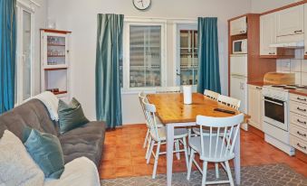 The area of the apartment is 49 m², with a kitchen-living room (sofa bed for one person), 2 beds in the downstairs bedroom, one single bed and a bunk bed in the upstairs bedroom. Sauna, washroom, 2 separate toilets, one upstairs. Balcony, no slope view. Aquahovi B6 is located in the central area of Levi.