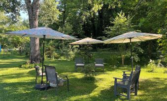 Your own outdoor patio overlooking the creek with private entry to a charming apartment with ample parking and easy level walk from parking pad to patio. Unique and colorful, this retreat and it's original art has inspired the many artists, musicians, authors and nature-lovers who have stayed here. Enjoy the park like setting 12 min. from Airport, 15 min. from Univ of TN, 40 min. from Smoky Mountains. Your home away from home is lovingly maintained and scrupulously cleaned
