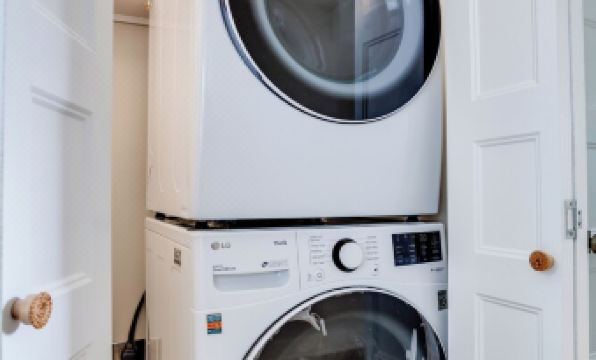 Full washer and dryer are available and laundry detergent is provided.