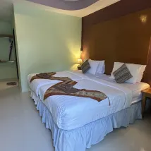 Le complexe a besoin d'une mise à jour et d'un entretien. La moisissure se développe sur le mur. Le personnel est sympathique et gentil. Aide à porter nos bagages jusqu'au ferry. Enregistrement au complexe directement sur la plage de Pattaya. À environ 5 minutes à pied de la rue piétonne Lipe.