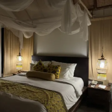 2. **Les chambres** sont spacieuses, un peu sombres et propices à la détente, mais la terrasse et la salle de bain sont juste sublimes ! Une salle de bain ouverte, une immense terrasse, et quasiment pas de moustiques ; et au cas où, l'hôtel dispose de tout le nécessaire pour s'en protéger.