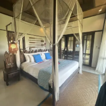 Un hôtel magnifique sur une île tranquille. Nous avions une villa à l'écart de la route, ce qui nous a permis de nous sentir en parfaite harmonie avec la nature. Il est à noter que si votre hébergement se trouve près de la route principale plus animée, vous ne bénéficierez probablement pas de la même quiétude.