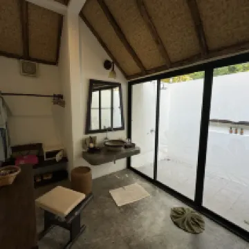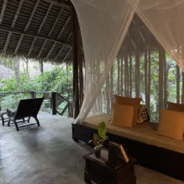 Premièrement, la chambre est confortable, calme et propre. Bien qu'il y ait parfois quelques insectes, c'est tout à fait compréhensible sur une île aussi préservée. Il y a même un espace devant la chambre où l'on peut pratiquer le yoga, ce qui est très agréable, mais attention aux moustiques et autres insectes !