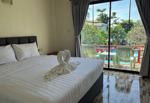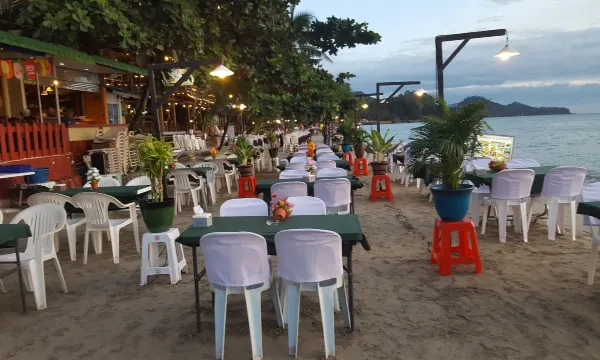 Il y avait une bouilloire, mais le thé et le café n'étaient disponibles que le jour de l'arrivée ; ils n'en rajoutaient pas. L'hôtel est bien situé par rapport aux autres lieux d'intérêt. Il y a un kiosque à milkshakes à la sortie, et sur la plage à droite, un café propose des cocktails à 100 bahts (plutôt bons). On trouve des cafés et des salons de massage à prix raisonnables dans la rue. J'ai loué des vélos à environ 200-300 mètres sur la droite (ils ne voulaient pas négocier le prix en face de l'hôtel). J'aurais pu les louer à l'hôtel, le prix était le même que pour tout le monde.