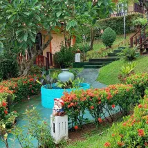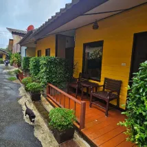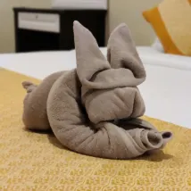 Personnel très sympathique. Il y a eu des problèmes de réservation, nous avons modifié le nombre de jours, nous avons été un peu perdus, mais tout a été réglé très rapidement. Ils nous ont proposé une petite maison climatisée au lieu d'une grande, avec remboursement du trop-perçu. Certes, la maison est très petite, mais elle nous a permis de nous laver et de dormir. Nous étions ravis de cette confusion par la suite. Nous habitions à l'A17, personne ne passe devant, on peut s'asseoir sur la véranda, c'est calme, magnifique, comme à la campagne. La musique du bar voisin est presque inaudible. Des amis ont fini par venir nous rejoindre depuis la grande maison pour des réunions. On peut aussi s'asseoir à la réception. J'ai été très satisfait du café/thé disponible 24h/24 à la réception, très pratique. Parfois, l'odeur des éléphants était présente lorsque le vent soufflait dans notre direction, mais cela arrivait rarement et pendant une courte période, et l'odeur était peu forte. Juste en face de l'hôtel, vous trouverez une excellente boulangerie proposant des viennoiseries fraîches, de bons massages et la mer est à 5-7 minutes à pied. Si vous ne vous attendez pas à des chambres luxueuses et que vous n'avez pas d'enfant en poussette, je recommande vivement cet hôtel.