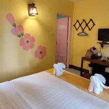 Небольшой уютный отель. Уборка в номерах по запросу (у нас не убирались ни разу за 3 дня), воду и туалетную бумагу оставляли у двери. Рядом 2 супермаркета! При отеле можно арендовать байк за 200 бат. Море в 300 метрах, песчаный пляж. Каждый день слонов водят купаться в Сиамский залив. За 500 б можно устроить индивидуальную фотосессию и купание со слоном. Вечером приятно прогуляться в сторону моря и попить 🍻 (шейки, кофе...) на пирсе или кафе.