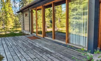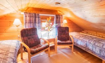 The spacious kitchen, dining area and big living room offer nice facilities to spend time together. There is a necessary kitchen equipment for making food, even for a larger group. The fireplace is creating a nice atmosphere. There are three bedrooms in the cabin, two have double beds and one have two bunk beds. Total area is 104² m plus 17 m² small loft. A Small loft is offering two more sleeping sites. Steep stairs to the loft. Electric sauna can be switched on to wait returning from outdoor activities. Two showers offering comfort to sauna session. A spacious hallway for several shoes and overalls and a drying area for shoes and overalls (instead of a drying cabinet) make your vacation easy and comfortable.Two toilets, washing machine and tumble dryer are helping with holiday practical arrangements. The terrace offers nice possibilities to enjoy of landscapes during the snowless period. There is a shared hut located in the area.