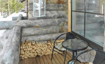 40 km to the north from Kolari, lake Äkäslompolojärvi 2,5 km, swimming beach 2,9 km. Apartment in a row house made from kelo log. Built in September 2017. Apartment area 57 m², 13 m² in the loft.
