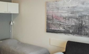 40 km North of Kolari, in the center of Äkäslompolo village. Apartment hotel apartment in up stairs, 27 m², 2 separate beds, kitchenette, bathroom/toilet, sauna. In basement storage for every apartment as well as the apartments share a ski maintenance. Altogether 16 apartments in apartment hotel.