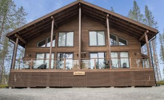40 km to north from Kolari, semi-detached house, made of thermo log, built in 2019. Ground floor 51 m²: Living room/kitchen, 1 bedroom with 2 single beds, washroom/WC, electric sauna. Upper floor 25 m²: 1 bedroom with 2 single beds, hall with bedsofa, WC. Else: Ski maintenance room for shared use with the Äkäsmartti A -apartment, own storage, travel cot, high chair for a baby, potty, Wi-Fi Internet access. Neighboring apartment is Äkäsmartti A (14229).