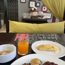 Réponse de l'établissement: Dear Valued Guest,Thank you for sharing your feedback. We’re glad to hear that you enjoyed our convenient location, the unique décor of the duplex room, and the friendly service from our team.We’ve noted your comments regarding the mattress, breakfast, and juice quality and will review them for future improvements. Your feedback is very valuable to us, and we hope to have the opportunity to provide an even better experience on your next visit.Warm regards, Front Office Manager.