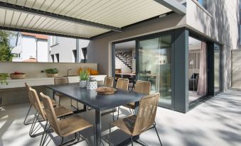 The accommodation was very, very clean and stylishly furnished. We could feel really comfortable. There was plenty of space whether inside or outside the house. The location is quiet in a cul-de-sac. A friendly landlord, with very good German skills, reli
