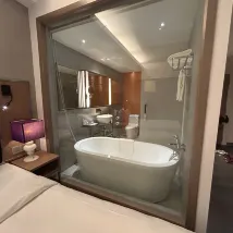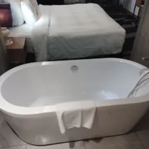 Je suis très satisfait des équipements de la chambre, y compris de la baignoire et du bureau.