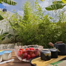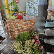 L'environnement est génial, le jardin est super beau, l'essentiel est que le café est super délicieux 9.9, le toit est plein de bougainvilliers et de plantes succulentes, très cosy, le magasin est très chaleureux et plein de détails, il y a des serviettes jetables et du bain de bouche , la réception est très accueillante, le petit déjeuner Les nouilles de riz sont super délicieuses