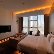 Shopping mall was a walking distance away from the hotel. There’s also a 24hr convenience store near the hotel. Warmly greeted during check-in, and check-in & out process is very smooth. Room was spacious and very clean. Toilet floor was also heated. Packet milks were delivered to the room before bed time — a nice touch. Staff went above and beyond helping us to navigate around China mobile app. Really appreciate both Yang and Ting for their help.