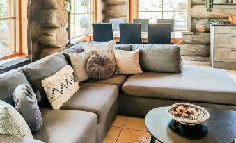 26 km north of Kuusamo, East Ruka (Vuosseli) 1.2 km, Western Ruka (Ruka village) 5.5 km. Separate kelo-log cottage built in 2008, downstairs living room, 2 bedrooms both with 2 beds á 80x200 cm, kitchen, dressing room, washroom, electric sauna, toilet. Upstairs: bedroom 3 with 2 beds á 80x200 cm + convertible sofa, toilet and balcony. Please note that the maximum number of people in the cottage for bookings from 14 April 2022 is 6.