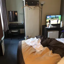 The room itself is spacious, clean, cozy. A bit old furniture, but all household items worked. Cleaning was good and timely.