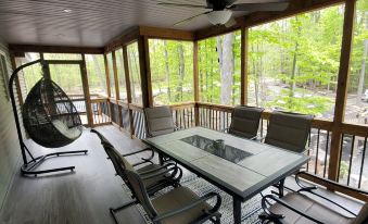 A perfect home for a relaxing getaway for up to 11 guests! The large chalet windows offer a stunning seasonal view of Big Spring Pond and the serene woods. Located on a quiet cul-de-sac, the Chalet offers a perfect location to gather with friends and family. It boasts a large wrap around deck and screened in porch, propane grill, perfect for entertaining.