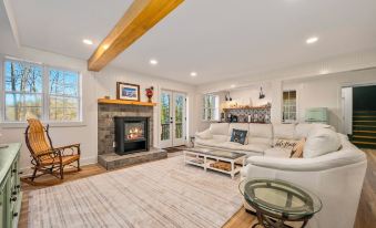 The outdoor spaces are just as impressive as the interiors. Expansive decks provide the perfect setting for outdoor dining, lounging, or simply soaking up the serene surroundings. A screened-in porch allows you to enjoy the fresh air in comfort, while the stone patio and fire pit are ideal for evening gatherings under the stars.