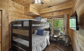 Vous vous sentirez comme chez vous dans ce cottage bénéficiant de la climatisation où vous profiiterez d'un bain à remous privé en plein air. Vous trouverez un balcon privé.Vous profiterez d'une cuisine dotée d'un réfrigérateur, un four et d'une plaque de cuisson. Parmi les petits plus, vous trouverez sur place un micro-ondes et un ventilateur de plafond.