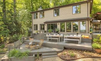 Casa Lago Moderna offers a truly enchanting lake vacation for up to 12 guests. Upon entering, you'll be struck by its modern wood ceilings and luxurious atmosphere. The wall of floor-to-ceiling windows showcases captivating year-round views of Lake Norman. The modern furnishings, tasteful decor, and large screen TVs invite you to unwind after a day of adventure. Dine while overlooking the lake at the gorgeous Italian dining table inside or outside on the deck. The stylish kitchen features high-end appliances, and everything you need to prepare and serve delicious meals for your group.