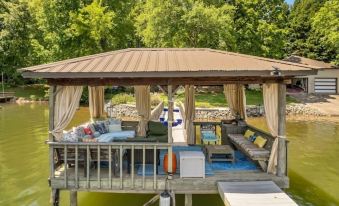 From May-Oct many would argue that being in the lake is where it’s at! This home's prime location on a big cove is actually where many boats from all over the lake come to drop anchor and jump in, because there aren't the treacherous waves like on the main channel. The water around the dock is deep (15'+). You can swim or tread water, but most prefer sitting in a float, laying on the large water mat, holding a pool noodle or floating with a life jacket. There’s even shade to be found in the water if you position yourself near the gazebo.