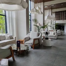 Nous avons adoré l'endroit, près de l'aéroport. Nous avons réservé un appartement face à la mer, où nous sommes restés deux nuits. Il était spacieux, propre et bien éclairé. Le couloir était clair et propre. Le lit était très bon et confortable, à l'exception des oreillers trop mous pour nous, sinon tout était excellent. Il y avait plein de cintres dans l'armoire. L'appartement était équipé d'un lave-linge (un plus), d'une cuisinière, d'un four et d'un micro-ondes que nous n'avons pas utilisés car la nourriture était facilement accessible près de l'hôtel. Grand réfrigérateur ! Le personnel de la réception était très sympathique et serviable. Les porteurs de l'hôtel et un homme âgé en malais baju kurung qui conduit la poussette sont également toujours très serviables. Seul bémol : le ménage. Ils ont oublié de nous remplacer nos peignoirs :) car le nôtre était mouillé. Le sol n'était pas balayé, mais c'était correct, et des chaussons étaient fournis. À part ces deux points, nous étions très satisfaits ;) Oh oui, le buffet du petit-déjeuner était délicieux, avec un choix varié pour tous les appétits. Félicitations au Riyaz Lavanya, Langkawi.