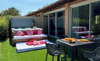 La gare la plus proche est Gare de Villeneuve-lès-Maguelone, qui se trouve à environ 6,3km de l'hôtel soit à peu près 11 min en voiture..Y a-t-il une gare à proximité de Bright apartment with large terrace & jacuzzi ?