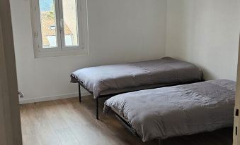 2 chambres : 3 lits simples et 2 lits doubles