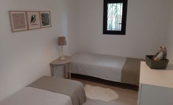 2 chambres : 2 lits simples et 1 lit queen size
