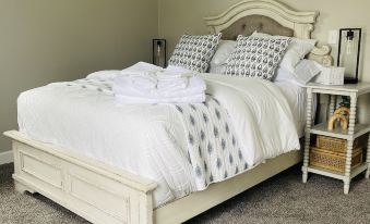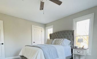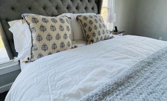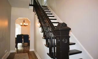 Two bedrooms are located on second floor of home with a full bath. A half bath is located on the main floor. Spacious living room and functional kitchen, with full size refrigerator, gas stove and microwave. WiFi is provided for convenience of staying connected with family and friends. With old homes, uneven floors are common and add charm to this home. Could cause vertigo sensations if sensitive to sloping floors.
