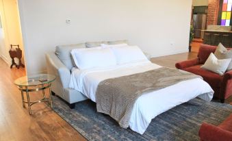 This location was wonderful for our family staying in town for a wedding in KC with a reception at Brunswick Ballroom. The living space is huge with a very nice master suite/bathroom and a lofted bedroom with the bunks. The owners did a great job with the mixing the historical feel with modern amenities. The location has easy access to surrounding areas. I would stay here again if I am ever back in the area.