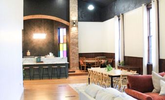 We enjoyed our stay at Black Thistle! It's a fun and inviting, unique stay in an old church. There was plenty of room for our group of three adults and three children. The town is cute and quaint with a few good dining options and two cute coffee shops. Close to the big city but just far enough to escape the hustle and bustle.