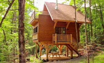 Nestled on the mountainside in the branches and leaves, the house in the trees of the Hawk is very intimate and perfectly integrated with its natural forest. Perched on 10 feet of stilts, it is the ideal observatory for wildlife by day and stars by night from its panoramic terrace 30 feet above the ground. The imposing windows and the south-facing orientation allow you to fully enjoy the morning light as well as the sunsets.