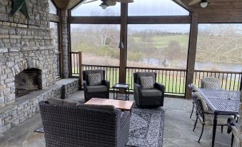 This gorgeous house located on 360 acres of Kentucky is perfect for any large gathering (family reunions, cooperate retreats). The house sits over looking a large 17 acre pond/lake stocked with bass and blue gill. Located about 20-25 minutes outside of Lexington this is a perfect location for anyone looking for a weekend getaway while still being fairly close to town. With Keeneland, Kroger Field, Rupp Arena, and the Bourbon Trail are just the start of some of the Lexington attractions that are in very reasonable driving distance. Registration number 15084991About pets:No pets allowed.About checkOut:Check out before 10:00 AM.About children:Children allowed: ages 0-17.About customRules:Absolutely no guests above the listed limit (16) at any time during a stay..About checkIn:Check in after 3:00 PM.About smoking:Smoking is not permitted.About minBookingAge:Minimum age to rent: 22.About events:No events allowed.