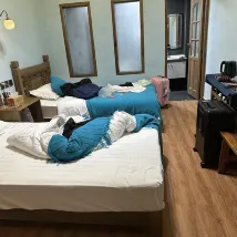 La chambre était très propre, confortable et luxueuse. Elle fournissait également des serviettes jetables pour le visage, ce qui n'est pas disponible dans de nombreux B&B. Bien que le B&B soit situé à flanc de colline, le propriétaire portait une valise dans une main. C'est un dur à cuire.
