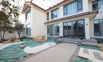 The homestay is a modern Naxi-style villa courtyard, continuing the traditional "three compounds and one screen wall" layout. White walls and gray tiles are paired with floor-to-ceiling glass, while the courtyard blooms with changing flowers and trees through seasons (spring roses, summer hydrangeas, autumn maple leaves, winter camellias). Naxi brocades and geometric lamps adorn the space, where tradition and modernity gently collide.